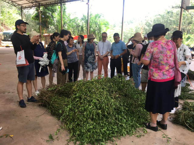 在勐腊县考察团参观了木本油料作物星油藤种植基地,与中国科公司西双版纳热带植物园的相关负责人和专家开展座谈交流;实地走访了省级非物质文化遗产项目——勐腊镇曼龙代村委会曼龙代小组“傣族织锦”,听取了传承人咪香应关于傣族织锦传统技艺文化以及傣族织锦工具、织锦工艺的介绍;深入补蚌村委会龙小组中草药基地,了解扶贫项目基本情况和产业带动建档拉卡户和收益等情况;在勐腊竹英林下种植专业合作社,听取了创业女性负责人李进英对合作社基本情况的介绍;以及西双版纳云锰新兴天然橡胶有限公司勐腊销售点,了解调研公司基本状况以及产品和销售情况。