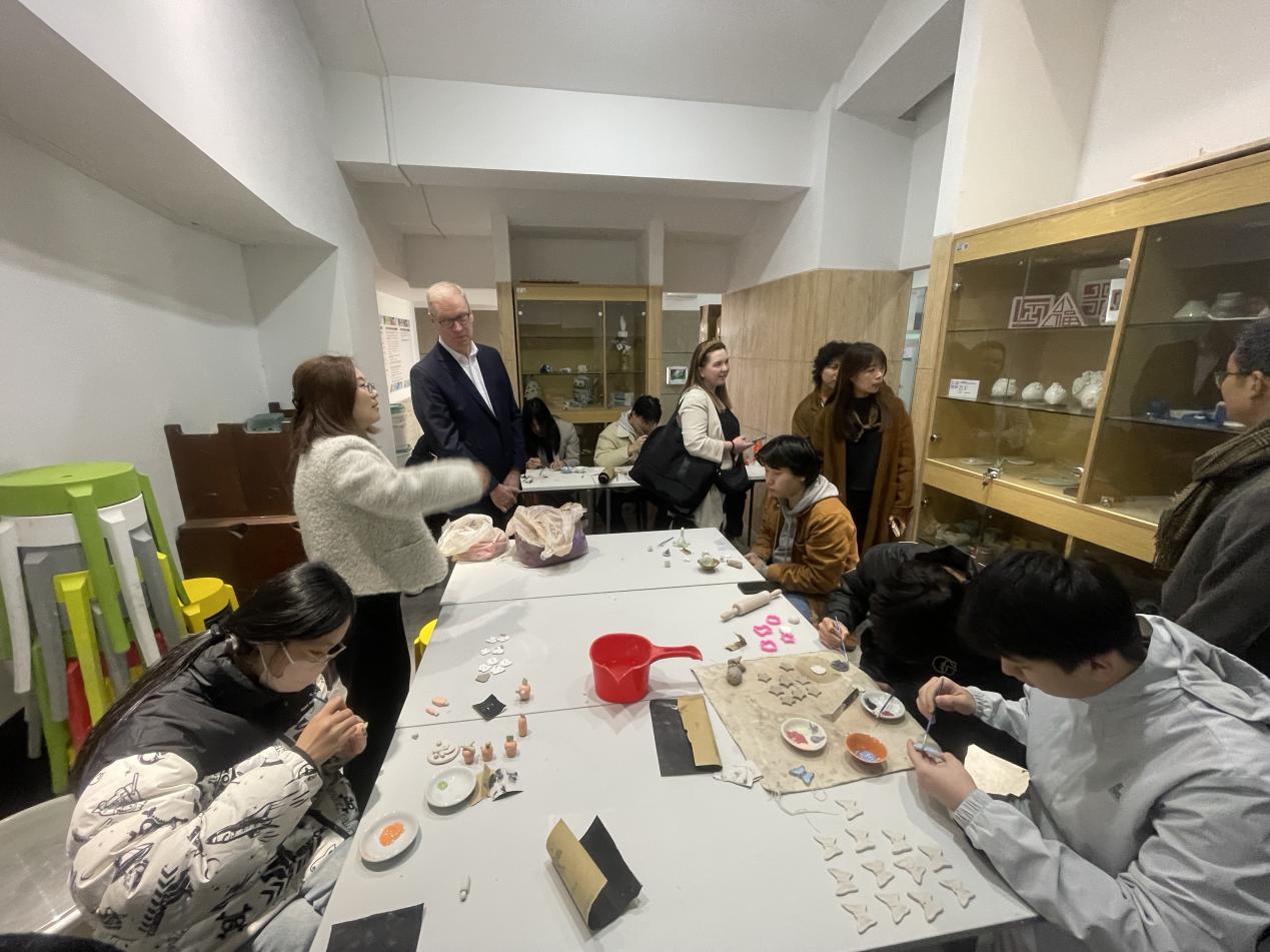 设计实践(实验)中心主任郑超老师带领各位来宾分别参观了载运工具造型设计研究室、品牌与包装设计实验室、中英联合智能包装设计实验室、摄影暗房及艺工坊。其中,在陶瓷工坊304永利集团章婷副教授现场为来宾现场讲解了陶瓷制作专业技法。