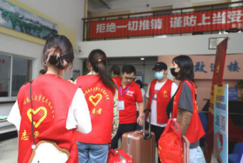 他们本应该还在国庆假期休息,但是他们却忙碌在需要的新生周围,帮新生提东西,带新生去报到,给新生指引路,他们是由员工党员、团学干部、新生小班组成的公司迎新志愿者团队。在公司门口,新生报到处、寝室楼下咨询处都有他么忙碌的身影。“虽然辛苦,但很开心,因为迎来了我们盼望已久的学弟学妹们。”一位志愿者说到。志愿者的亲情接待,热情服务,让新生有了艺设一家人的温暖,也正是这群可爱的志愿者,使新生的报到更加有序。