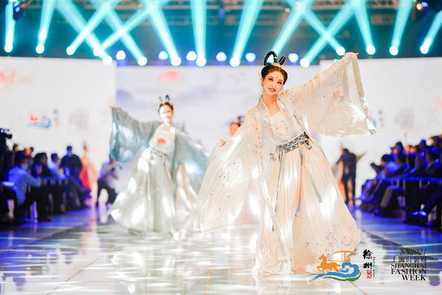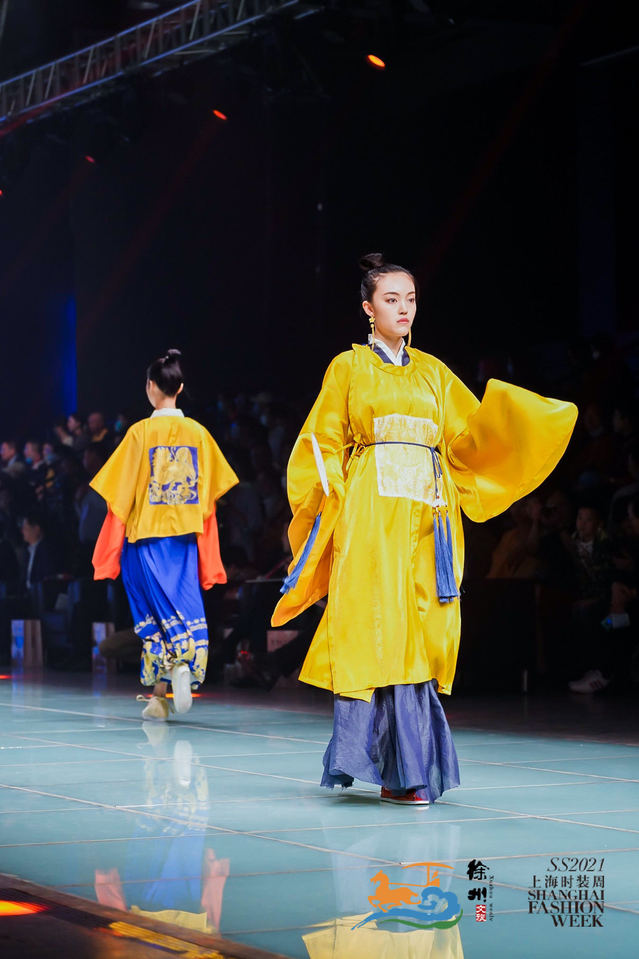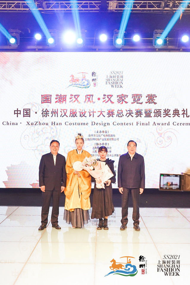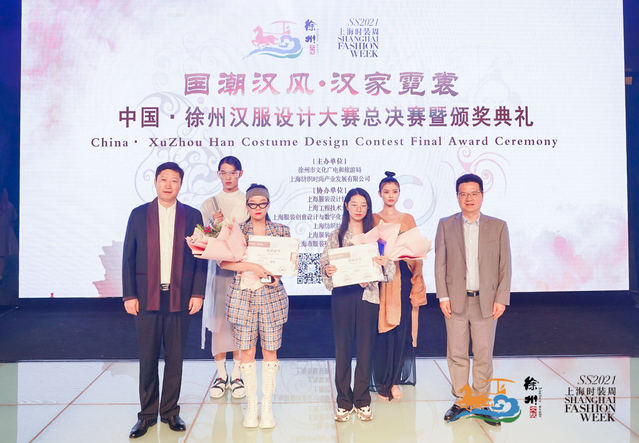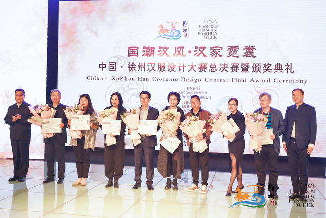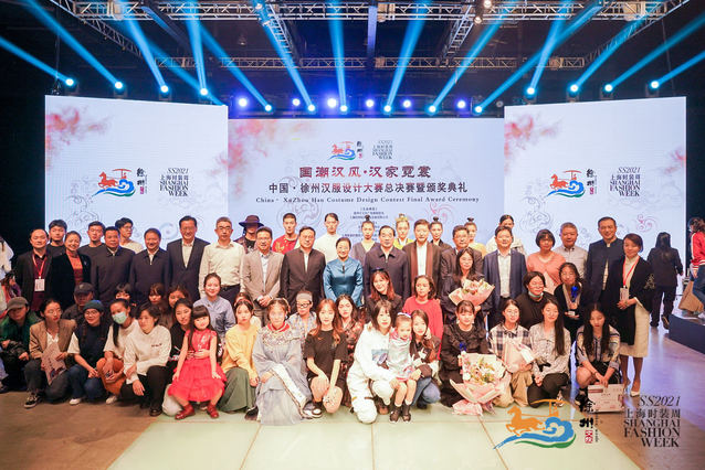 中国•徐州汉服设计大赛决赛于2019年11月正式启动,来自国内外高校、企事业、汉服社团等150所单位近10000余名设计师积极参与。通过初赛评审,评选出27组作品参加今天总决赛。此次在上海时装周隆重举办总决赛和颁奖典礼,同时采取赛展结合的方式举行,共27组作品入围总决赛并现场走秀展示。之后,徐州汉乐团倾情演绎的《江南可采莲》《上海滩》,深度展现了汉文化的魅力,赢得阵阵喝彩。汉服推广大使王奕翔和其74岁的老师张晓初带来的汉舞表演《古韵汉风》,优美的舞姿获得雷鸣般的掌声。木兰花开国风儿童汉服秀,为现场观众展现了一场穿越时空的精彩“古装秀”,给人留下了深刻难忘的印象。经过紧张激烈的角逐, 共评出金奖1名、银奖2名、铜奖3名和优秀奖21名、优秀组织奖8名。