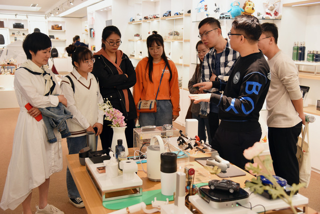 会后,在设计部总监张志鹏的陪同下,金薇薇副教授一行参观了企业工作坊和作品展厅,由总监助理和企业设计师陆玮(系公司2020届本科毕业生)做项目介绍。参观结束后,企业赠送由陆玮设计的凯迪拉克联名小礼品,再次对金薇薇副教授一行的交流考察表示肯定与欢迎,交流双方合影留念。