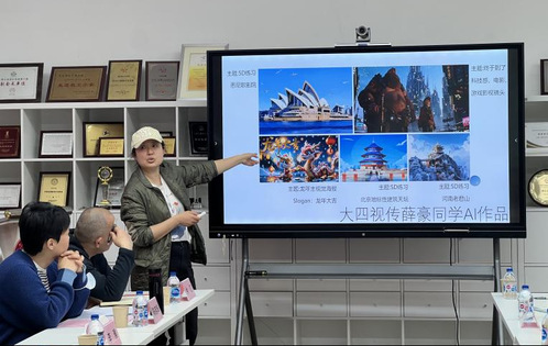 社会设计系副主任李雅分享了人工智能技术融入视觉传达设计、环境设计专业人才培养的做法,并就课程教学大纲与教学方案、实习就业、设计创作中的AI应用进行了案例展示。