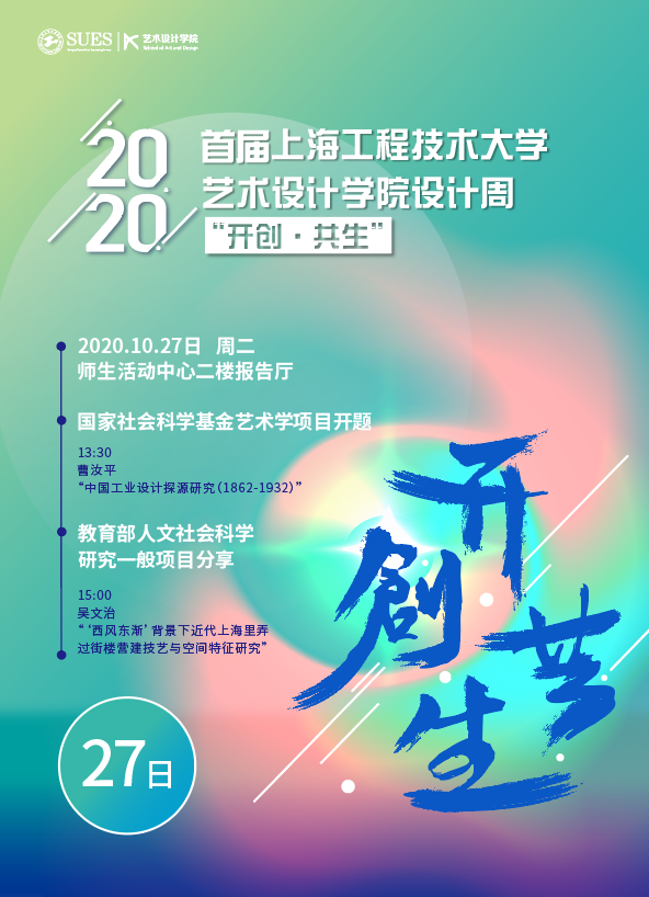 13: 30-14:50 | 国家社会科学基金艺术学项目开题 “中国工业设计探源研究(1862-1932)” 曹汝平老师 | 师生活动中心二楼报告厅 |