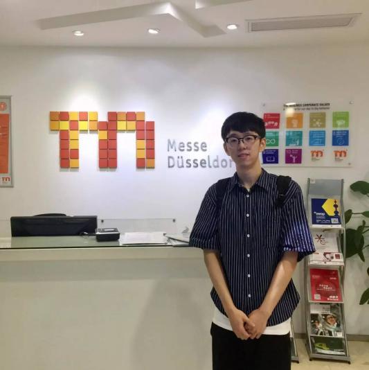 304永利集团艺术与科技专业14级的徐韡轩同学,有幸进入德国杜塞尔多夫展览上海分公司进行产学合作教育,在项目组进行工作和学习。