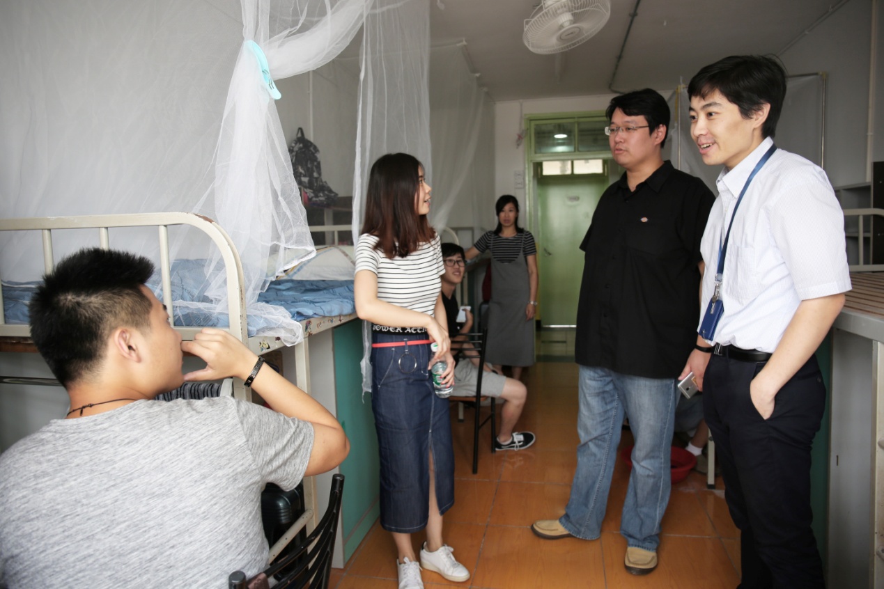 党总支副书记吕宁来到员工宿舍看望新生和家长们,对他们的到来致以亲切的问候,了解新生的家庭家庭情况,报到情况、住宿情况等,并祝新生们能顺利愉快的完成四年学业,获得成长、取得收获。