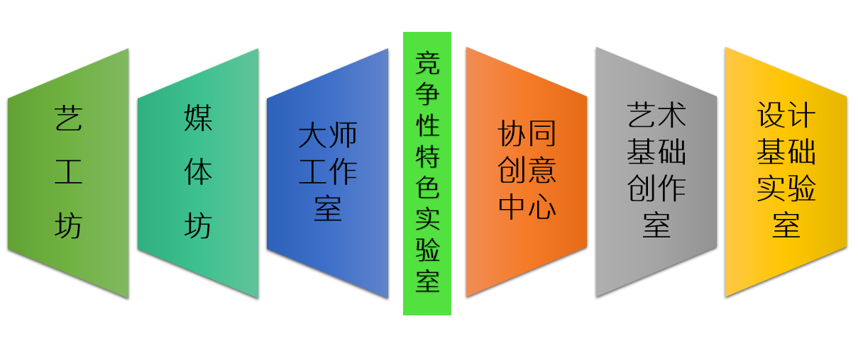 为适应新时期对高等设计艺术的要求,改善和提高实践教学资源和效果,中心整合和改造了一批数字化与设计类实践实验空间,分为七个实践板块,包括艺工坊、媒体坊、设计基础实验室(CMF)、艺术基础创作室、竞争性特色实验室(学科实验室)、大师工作室、协同创意中心。