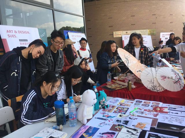 青春,在岁月的长河流动,在成长的年轮流转,滑出流星般的舞步,闪耀智慧与梦想的光芒。那是我们的青春,独一无二。在艺术楼广场上“民俗传统手工艺展示”社团巡礼活动上,同学们为员工准备了陶艺、扎染、刺绣等一系列传统文化活动。同时,在广场上开展了现场速写活动,为公司的员工们画上了一幅幅有着纪念意义的速写和漫画。