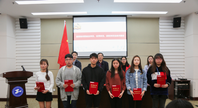 会上,优秀学员代表姚陈静同学以《不忘初心,积极向党组织靠拢》为题进行发言。培训班班主任杨爽老师向大会做了培训班的工作总结汇报。接着,与会领导老师向顺利结业学员、优秀学员、荣获知识竞赛、创意海报设计比赛获奖者颁发荣誉证书。最后,与会领导老师向培训班学员赠发最新版《中国共产党章程》、公司党总支《党员练成手册》。据悉,本期培训班自10月18日开始至今半个多月时间,举行了专题报告会4场,同时结合艺术公司实际开展了丰富多彩、形式多样的迎接党的十九大知识竞赛、创意设计海报设计比赛的实践活动。今后,各位学员将以更加饱满的热情投入到学习、工作、生活中。本次培训班提升了公司入党积极分子和员工班团干部的政治意识、大局意识、核心意识、看齐意识,展现了304永利集团积极分子和员工班团干部良好的精神面貌。