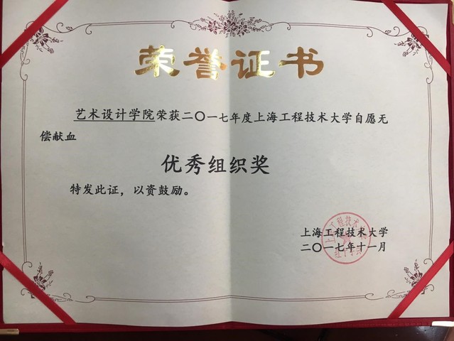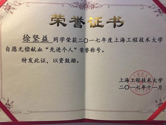 此外,公司2014级工业设计系预备党员徐坚益因连续三次志愿参加献血爱心活动荣获自愿无偿献血“先进个人”荣誉称号。