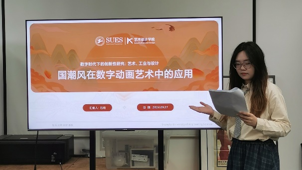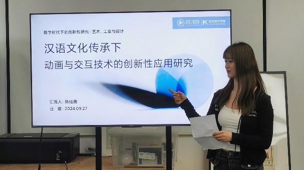 2024年9月27日16时30分,在艺术楼C317,由叶晓娴教师带领举办了主题为“数字时代下的创新性研究:艺术、工业与设计”,与会共十位研究生同学(赵炎晟、谭馨怡、卢红红、陈佳薇、胡栋、石晴、张浩洋、李迅、王瑞、卫纬)分享了各自研究方向的成果,叶晓娴教授主持了学术报告,并对各位同学的汇报做出了重要点评。