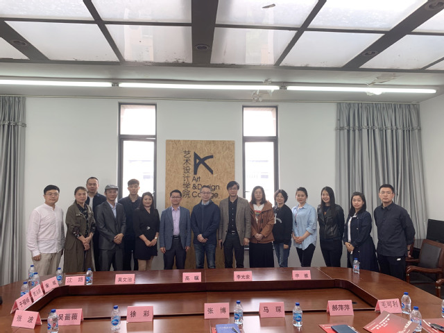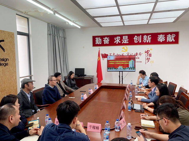 2021年4月28日上午,山东青年政治公司设计艺术公司经理张博、副经理徐彩一行来访艺术公司,公司经理高瞩、副经理李光安、环境设计设计系主任吴文治、视传与媒体设计系副主任李雅等参与接待交流。