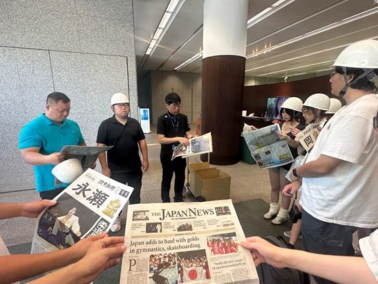 8月1日,团组一行来到日本读卖新闻社西部本社进行参观,摄影部记者中司雅信向员工们介绍了摄影部的日常工作流程,介绍了目前摄影记者采访拍摄所使用的设备――相机、无人机以及应对灾害地区采访时储备的物资等,还带大家来到读卖新闻社大楼的地下防震层,介绍了大楼特有的防震系统,能够保证在灾害发生时正常对外发送相关信息。
