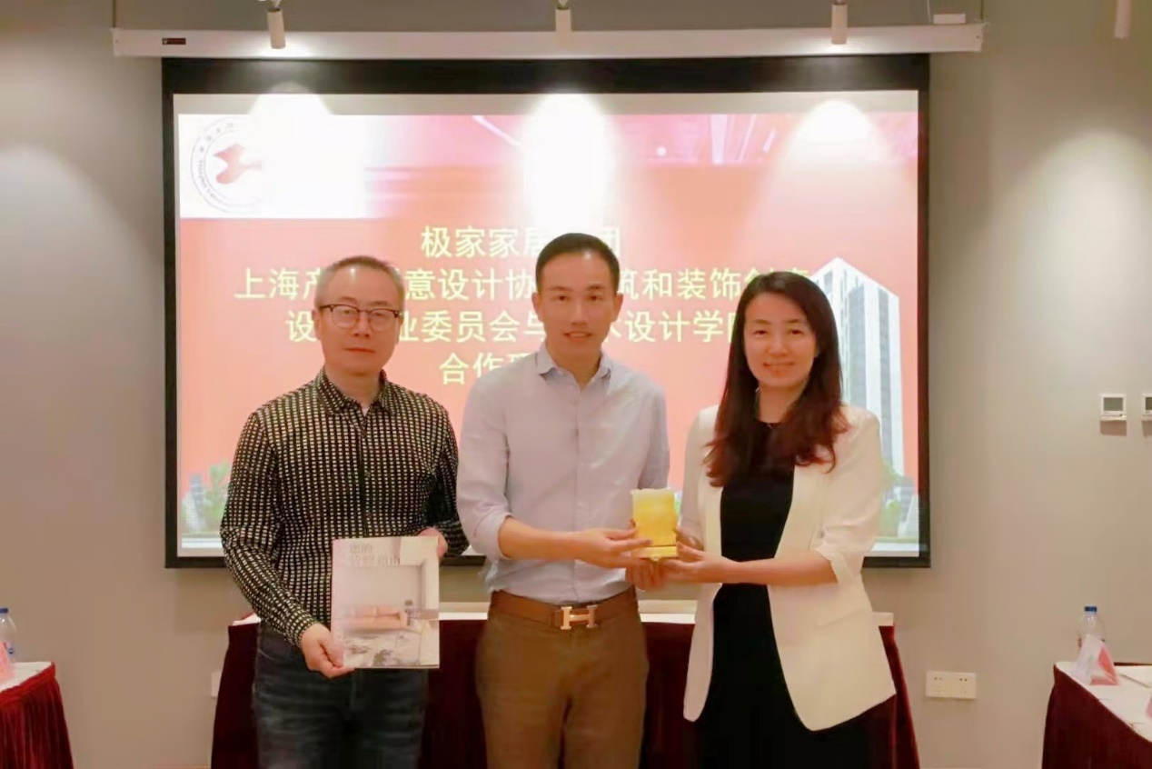 5月21号下午,上海极家家居集团总裁任志天和上海产业创意设计协会建筑及装饰创意设计专业委员会秘书长刘克一行十人来到304永利集团就专业建设、研究室现状、校企合作等相关事宜进行实地调研和会谈。304永利集团公司党委书记袁蓉、党委副书记经理高瞩教授、党委副书记刘江、副经理刘芹、党政办主任程昭、环境设计系主任吴文治、副主任朱炜等对任志天总裁和刘克秘书长一行进行了接待,并带领任志天总裁和刘克秘书长一行对公司各研究团队和实验室进行了参观并就双方共同关心的问题举行专题研讨交流会。