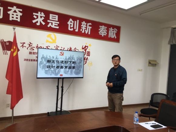 本次党史教育主题党日活动在支部委员余江老师和郑超老师的微党课中拉开了帷幕。余江老师主讲了题为“学习共产党人好榜样——彭雪枫将军”的微党课,彭雪枫是中国工农红军和新四军杰出的指挥员、军事家,参加过多次反“围剿”和二万五千里长征,是抗日战争中新四军牺牲的最高将领之一,被毛泽东、朱德誉为“中国共产党人的好榜样”。余老师结合史料和大量图片讲述了将军“出生入死、致力革命二十年”的光辉斗争历程,和他时时处处从人民的利益出发、率先垂范做榜样的优秀事迹,为支部党员上了生动的一课。郑超老师结合党史教育从专业视角出发讲了题为“新文化运动下的设计与美育启蒙”微党课。百年前,以蔡元培、陈独秀、丰子恺、林风眠、陈之佛等为代表的思想家、教育家们,在提倡民主、科学的同时,提出了“以美育代宗教”“美育救国”等理想,主张调和东西方文化,一方面把美术与大众生活紧密结合,形成了中国特色的设计文化,另一方面将艺术与现代教育融合,提出了一系列美育新主张。这股浪潮也催生了一大批进步刊物如《新青年》,成为五四运动的号角和宣传马列主义、宣传反帝反封建思想的阵地,前后刊登关于马克思主义、十月革命和中国工人运动的文章达130余篇,后来成为中国上海共产主义小组的机关刊物,与当时秘密编辑发行的《共产党》月刊互相配合,为中国共产党的成立作了理论上正式的准备。据悉,此次开讲的微党课是教工第一党支部党史学习主题教育“党员人人讲党史”活动的第二场,已有3名党员参讲,后续还将持续开展下去。
