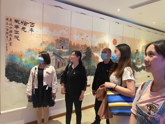 随后,支部党员集体前往中共二大会址、一大会址、中共代表团驻沪办事处旧址等地开展了“红色基地大寻访”活动。在二大会址纪念馆内,党员们依次参观了序厅、基本陈列厅、中共二大第一次全体会议原址、党章历程厅、平民女校原址展厅、人民出版社旧址里的大量珍贵文物资料,再次回顾了中国共产党创建发展的艰苦历程。1922年7月,中国共产党第二次全国代表大会在此地召开,会上第一次提出党的反帝反封建的民主革命纲领,第一次提出党的统一战线思想,制定第一部党章,第一次比较完整地对工人运动、青少年运动和妇女运动提出要求,第一次明确决定加入共产国际,第一次明文提出“中国共产党万岁”的口号,为中国革命指明了方向,与中共一大共同完成党的创建任务。通过现场学习,党员们再次重温了党史中的伟大时刻,再一次接受了思想的洗礼,对于中共二大在党的历史上的重要地位、党的妇女解放运动的实践和探索等方面都有了更加直观和深刻的认识。党员们还参观了正在馆内举办的向建党百年献礼的“风展红旗如画”画展。