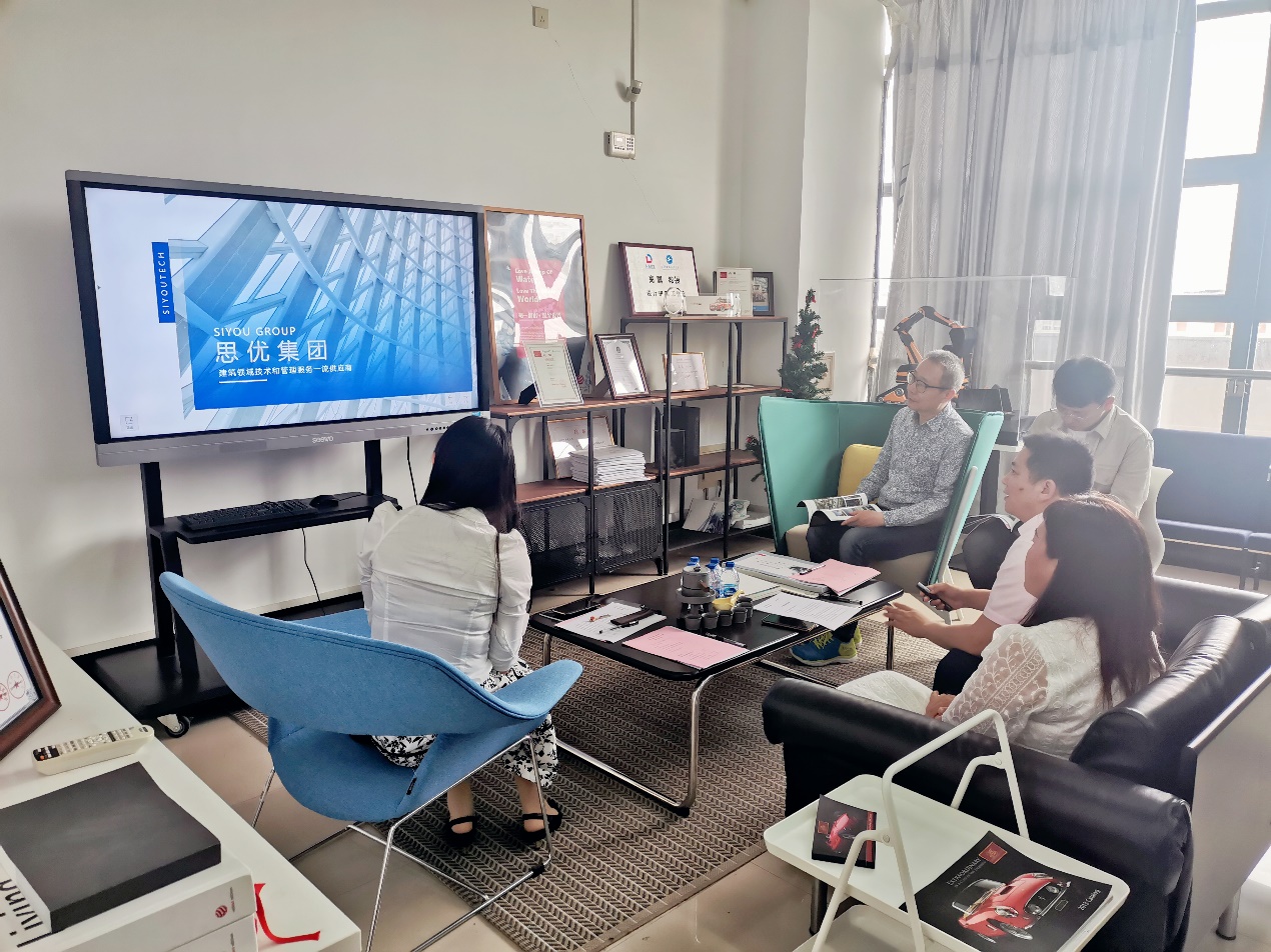 2021年5月27号星期四下午,上海思优建筑科技有限公司董事长刘立志,给排水总工程师沈丽一行两人来到304永利集团,就公司专业建设、研究室现状、校企合作等相关事宜进行实地调研。304永利集团经理、党委副书记高瞩教授,公司产学研办公室常务副主任陈璐,及公司工业设计系副教授许桂苹,在艺术楼503工作室对刘立志董事长一行进行了接待,开展了此次“企业高校产学研合作”交流座谈会。