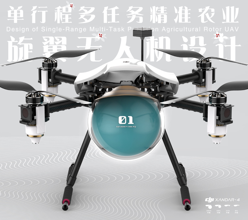 高瞩教授项目理念基于我国精准农业设备良莠不齐的现状,对现有航空技术在农林业上的应用进行查阅和分析,完成了无人机的结构改良设计、空气动力学外观设计以及单行程多任务的路径规划设计。项目的技术创新点如下:1、通过对农用无人机的药箱及喷头完成结构改良设计,使得无人机在单次巡航飞行中能完成多种药液交替喷洒的工作。2、基于空气动力对无人机外表面的影响层级研究,对无人机的主体外壳完成了流体设计,使得无人机主体阻力更小,续航能力更强。3、根据单行程多任务精准农业旋翼无人机的喷洒模式,改良了路径规划模式。