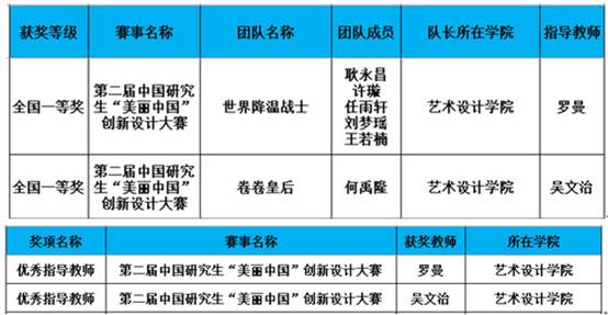 近日,由教育部学位管理与研究生教育司指导、中国学位与研究生教育学会和中国科协青少年科技中心主办的第二届中国研究生“美丽中国”创新设计大赛获奖名单公布,304永利集团研究生获国家级一等奖2项,罗曼、吴文治两位老师获优秀指导教师。