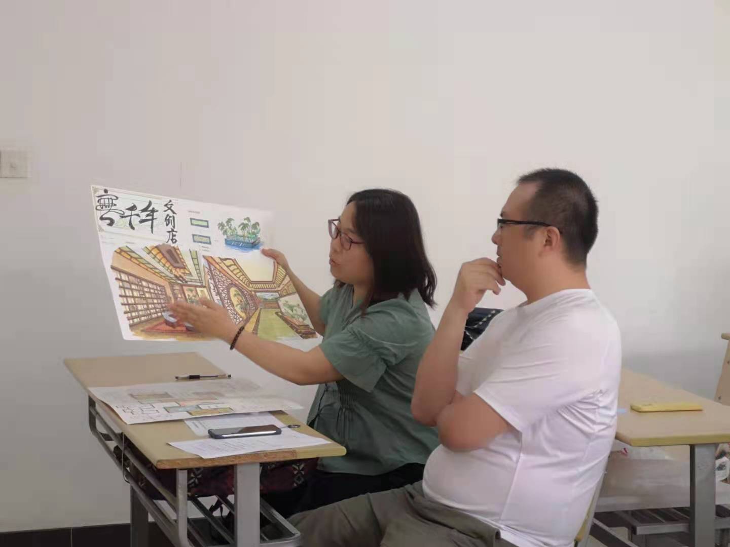 最后,课堂设置了答疑环节,老师们就班级部分优秀员工参加的“2021两岸手绘设计”竞赛方案进行了个别辅导,旨在以赛促教,通过对参赛作品中存在的问题查漏补缺,拓展专业知识,帮助员工提早接触系统的方案设计。
