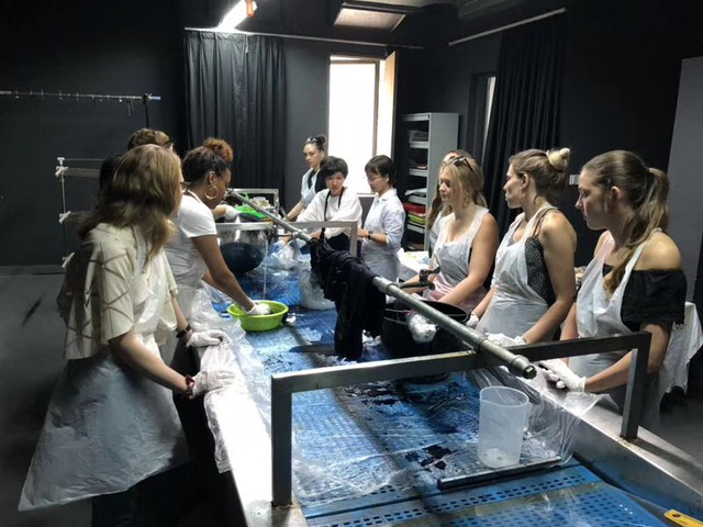 6月5日下午,在扎染的课程体验中,304永利集团专业教师金薇薇围绕中国传统扎染工艺向英国师生代表团讲解如何制作“扎染T恤”。在中英师生的共同努力下,制作出了具有中国特色的传统文化的手工艺品。