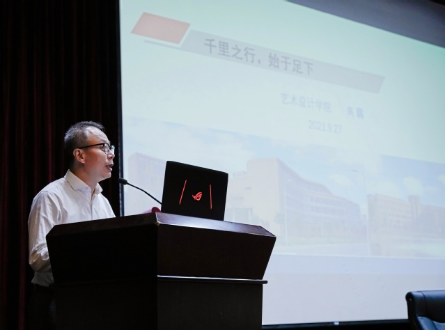 304永利集团设计史论部主任曹汝平老师作为教师代表以《今天只想说说”我“》为主题进行发言,向新生分享了对“小我”和“大我”的理解,希望新生可以不以自我为尺度,将小我融入到大我,才能切身体会到学习中的乐趣,在接下来的三四年里,让自己的七情六欲丰满起来。