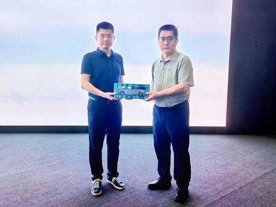 唐处代表校方接受罗总赠送的上汽大通原厂车模。