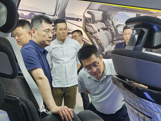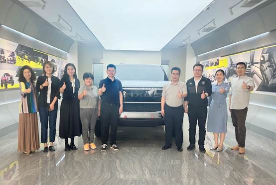 上汽大通汽车有限公司设计中心总监罗剑、前瞻性设计经理王鹏等接待了唐永升一行,并带领参观、介绍了上汽大通的展厅、油泥制作、CMF设计、设计流程、历代车型等。