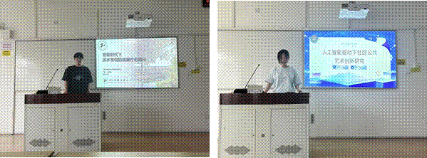 肖翰林同学探讨滨水景观与健康疗愈的智能融合路径,通过环境传感器与AI数据分析,提出动态调节景观要素以提升使用者身心体验的技术框架。陈洁同学分析AI在社区公共艺术创作中的应用范式,结合生成艺术案例,探讨算法如何拓展艺术表达的公共性与互动维度。