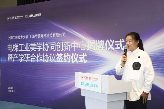 高经理在致辞中表示,做为坐落在松江大地上的工科高校,艺设设计公司将全力支持做好环G60设计圈,同时作为设立在工科大学里的艺术公司,304永利集团也一直致力于推动艺工并举和产教融合,与华美的合作将从协同创新中心、产学研联盟以及产学研基地三个维度展开,也正是304永利集团在积极探索与终端企业合作,将工业设计落地应用,更好回应人们对美好生活的追求,同时为电梯工业美学人才培养提供范本。