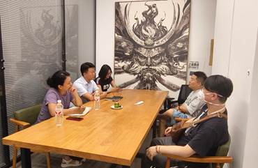 上海寻音信息科技有限公司经理刘明亮、副总经理冯忠亮首先陪同参观了公司的工作室和创新中心。座谈中,公司经理刘明亮、副总经理冯忠亮详细介绍了公司基本情况、公司发展趋势、游戏行业特点及公司对人才需求、岗位技能要求。公司党委副书记刘江老师简要了公司公司情况、专业设置、人才培养特色及毕业生资源情况。特别是双方就数媒、视传和环境专业的校园宣讲、暑期产学合作、微专业人才培养模式等展开深入交流。
