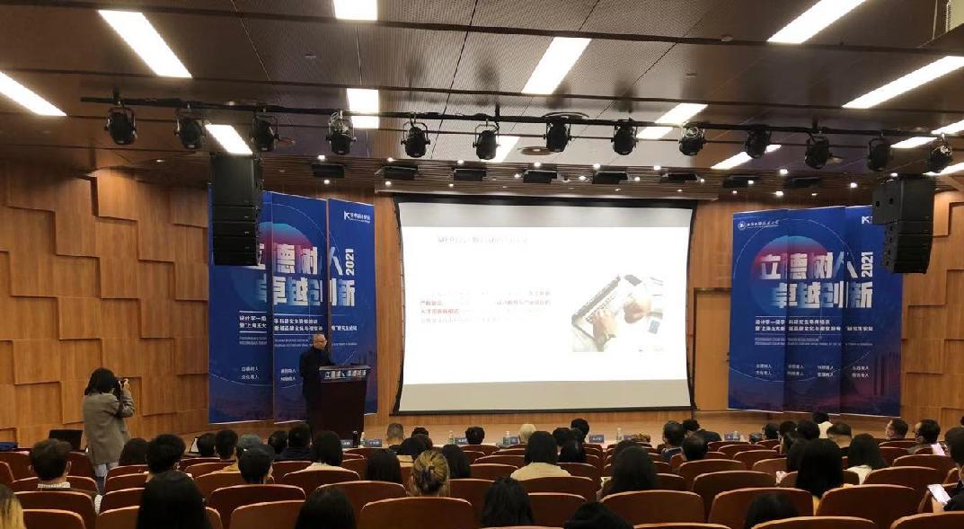 上海国际设计创新公司与同济大学设计创意公司教授、博士生导师,徐江教授演讲《一流设计学公司产品探索》,首先回顾了同济大学设计学科的发展历程,强调了社会大变革呼唤新文科的大背景,讲述了在实践教学中——立体“T型”的本、硕、博创新人才培养理念,而后从员工的学科研究、设计科学、设计哲学三个层面分别展开,演讲最后,提出了导师的使命担当:与员工一起成长。