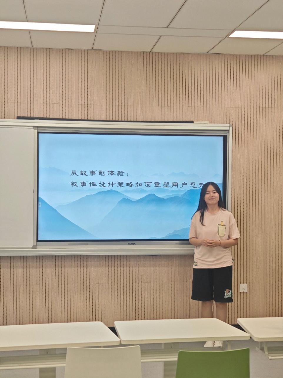 刘浩然同学以《从故事到体验:叙事性设计策略如何重塑用户感知》为题的汇报中,探讨了如何将叙事自然且深入地融入设计过程,从而使用户能够更“清晰”、“直观”乃至“无意识”地感知和使用设计。