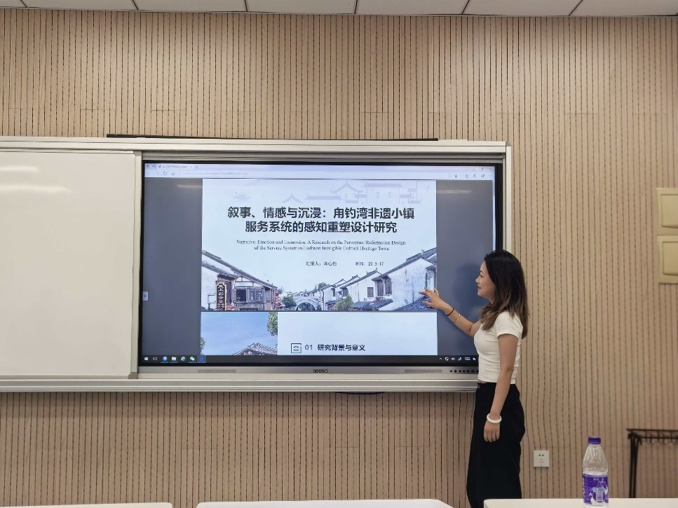 2025年9月17日下午16:00,由陈璐副教授主持的研究生学术汇报在教学楼C407顺利举行。本次汇报以“感知重塑:设计中的叙事、情感与沉浸式体验”为题,共有刘浩然等12位来自不同专业背景的员工参与研讨。同学们围绕叙事性策略、情感传递机制与沉浸式体验构建等核心议题,结合具体设计案例展开跨维度、多层次的探讨,呈现出叙事与情感在重塑用户感知过程中的关键作用,反映出新一代研究者对体验设计前沿的深入思考与创新实践。