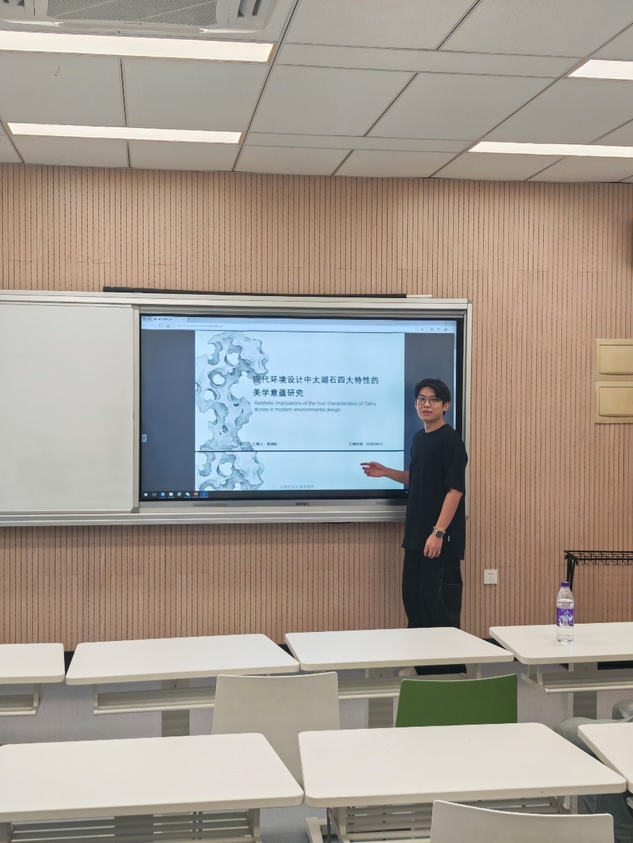 李泽钜同学以太湖石"皱、漏、瘦、透"四大传统美学特性为切入点,深入探讨了其在现代环境设计中的叙事表达与感知重塑价值。不仅聚焦于形式语言的转译与融合,更着重分析了这些美学特征如何通过空间叙事引发情感共鸣,并营造出沉浸式的东方美学体验。最终提出将太湖石的形态、质感与空间意象转化为设计语言,能够有效打破传统与现代的界限,构建出融合历史记忆与当代感知的场域,从而实现从物质层面的观赏到精神层面的体验升华,为现代设计中的文化传承与感知创新提供了富有启示性的路径。