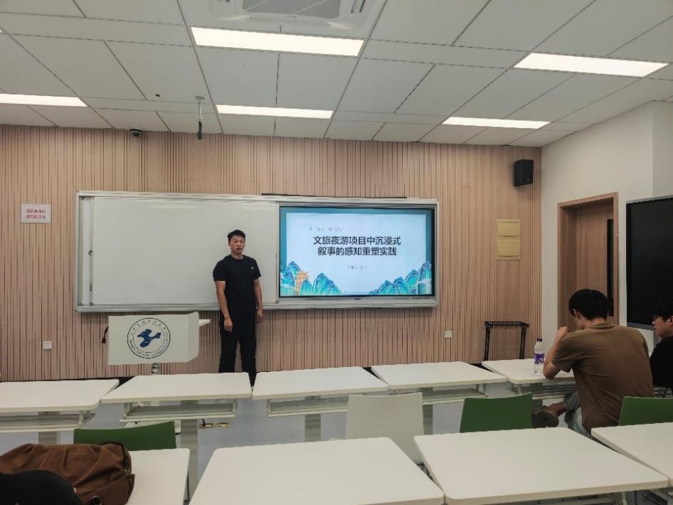 陈浩同学探讨通过智能算法优化叙事空间布局,借助AR/VR技术与真人表演的协同互动,构建多维感知的叙事场域,使游客从被动观览者转变为主动参与者。这种"人机协同"的叙事模式提升了夜间旅游体验的情感深度,为文旅项目创新提供了重要实践思路。