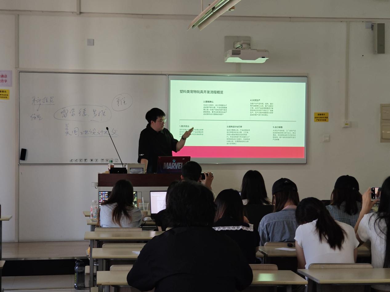 首先,刘晓彬对宠物玩具的产品种类、材质、工艺与功能进行了详细梳理,并深入剖析了塑料类宠物玩具的完整开发流程——涵盖需求提出、图稿确认、结构设计与打样、大货生产及出口销售。通过生动的案例,为同学们清晰地展示了一款产品如何从抽象想法逐步落地为可供全球市场销售的商品。