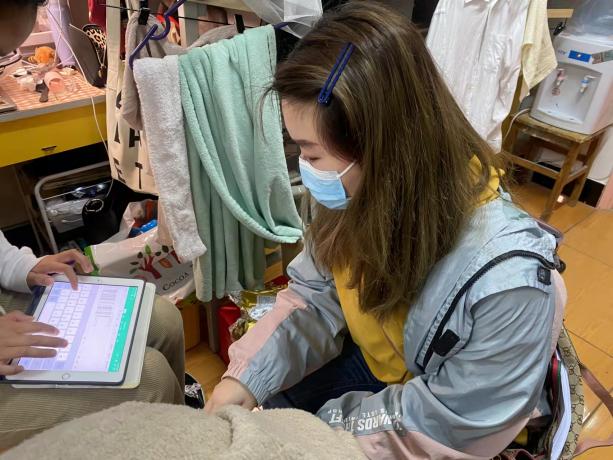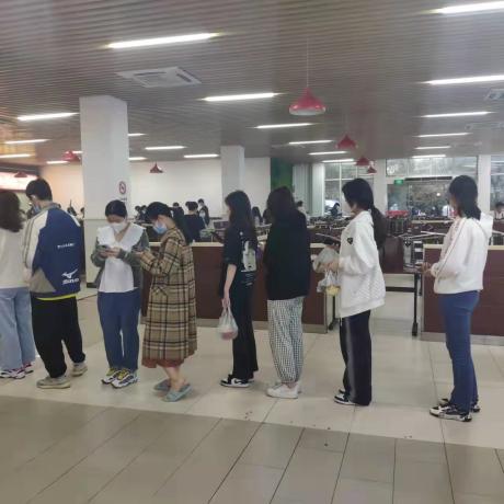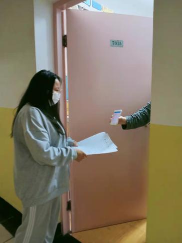 本科生入党积极分子刘玥妤同学,在三期20号楼查看员工三次核酸和帮同学买饭