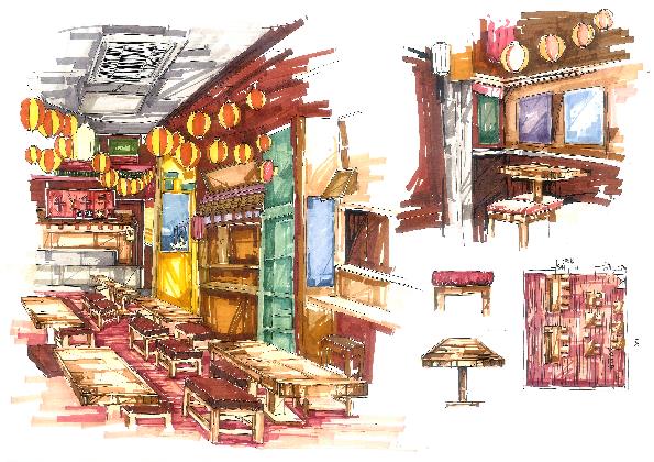 在课程 “综合表达”单元,陈老师分别就手绘方案的平面、立面、剖面图在制图上的要点做了讲解,尤其强调员工在绘图、标注上要注重细节,一丝不苟;要求员工端正学习态度,通过绘画技能的训练,培养员工敬业、精益、专注的“工匠精神”。同时,课程结合业界大型手绘比赛“两岸手绘设计”竞赛完成方案手绘表达,旨在延续课堂教学,以赛促教,通过对参赛作品中存在的问题查漏补缺,帮助员工拓展专业知识,促使他们尽早接触系统的方案设计,培养设计思维,顺利衔接之后的专业类课程的学习。