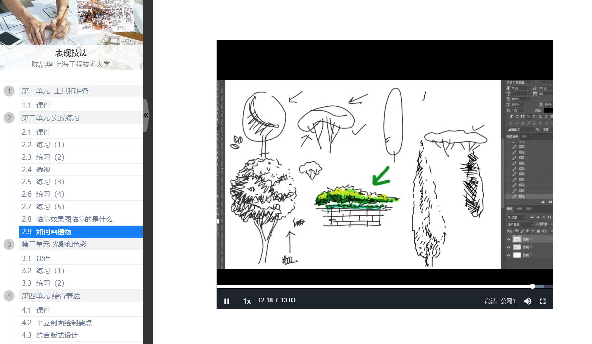 其一是如何做好从线下到线上课堂的转换与衔接,以保证正常教学的质量能够始终如一。对此,陈老师在微信群实时沟通基础上,依托双渠道在线教学平台(泛雅超星学习通和腾讯会议),完成空中教室与线下课堂的对接。通过在泛雅超星学习通平台搭建《表现技法》在线课程内容,发布作业、重要知识点及配套学习资料,并运用“腾讯会议”录制课堂视频,选取重要片段上传至学习通平台,供员工课后反复观摩学习。