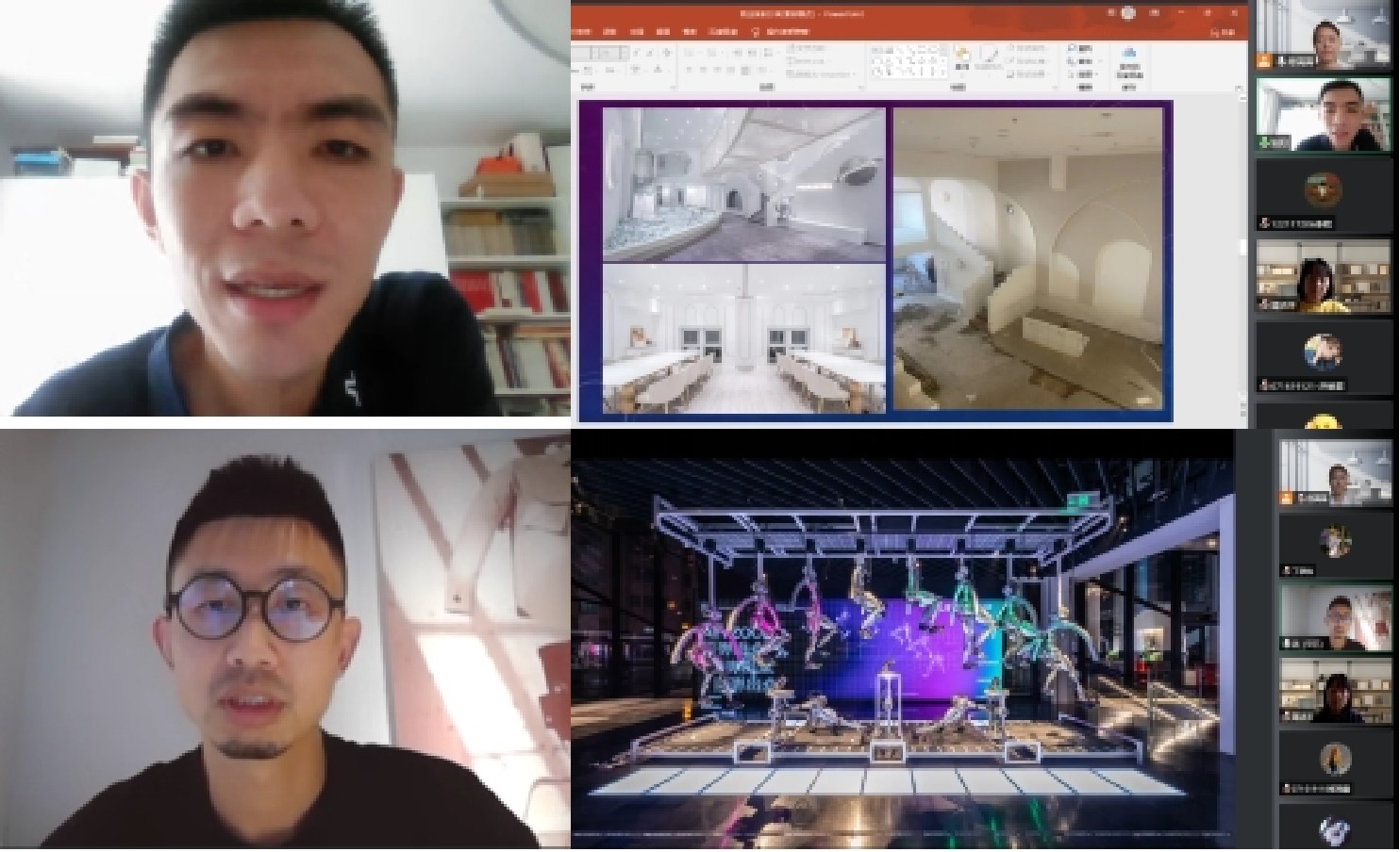 艺术与科技专业“项目综合设计(一)”课程的任课教师是晋洁芳、刘芹两位教师,企业导师是上海半点设计有限公司的创始合伙人、设计工程部经理洪立春和天津山水空间装饰工程有限公司创始人张阳。两位企业导师在设计创意、设计施工以及设计管理上有丰富的经验,在教学中企业导师以案例介绍的方式,对行业领域内的设计新趋势、新理念进行引导,对新材料工艺、新技术及工程施工过程中的经验进行分享,对项目设计管理流程和方法进行介绍。在教学过程中原计划拟安排员工到相关企业、材料展示馆、材料市场以及施工现场进行调研和考察,因疫情防控管理,教学计划中与企业交流的部分改为线上方式进行。