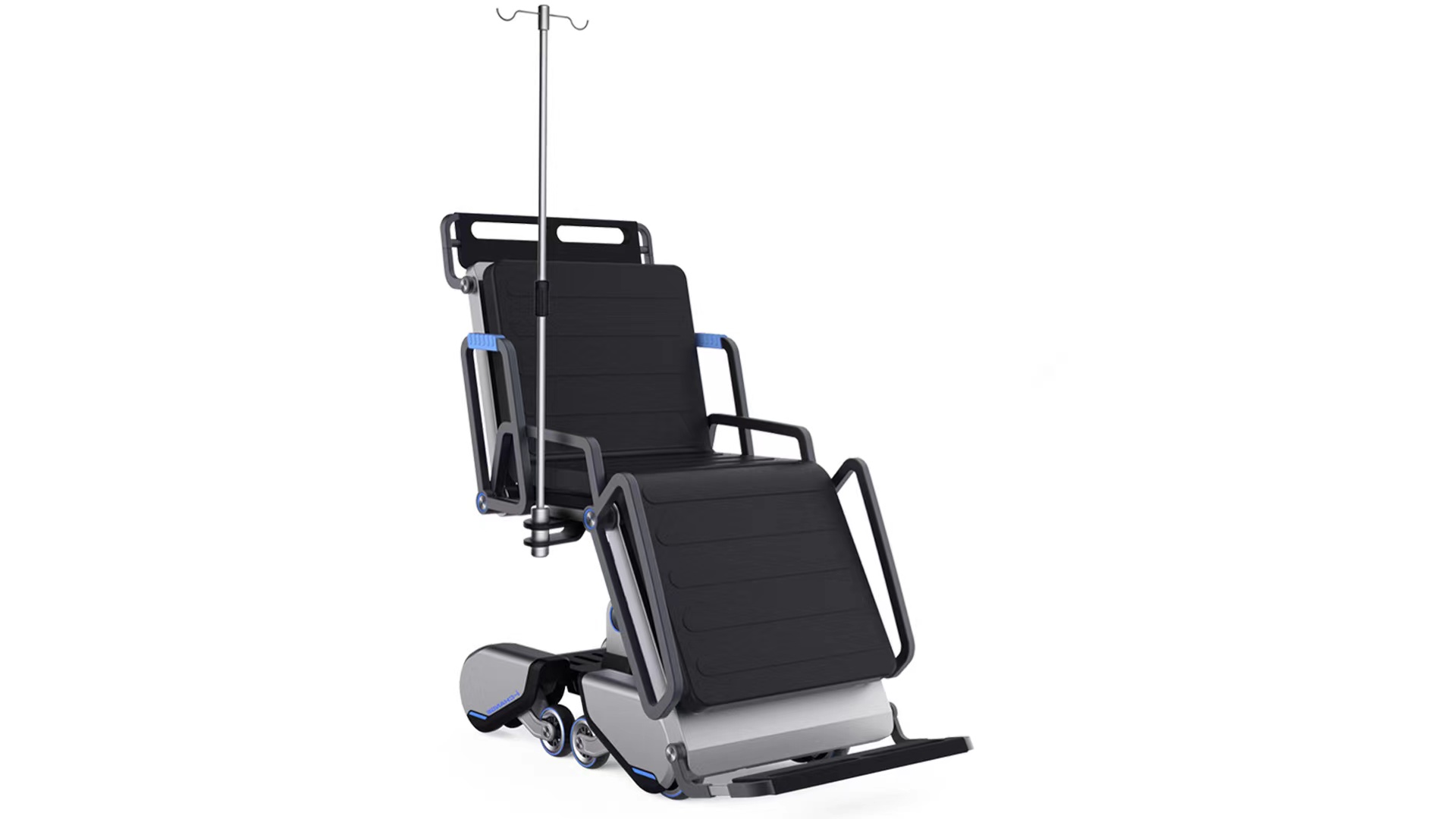 此款急救病床的设计,可通过角度及高度的调节转化成电动轮椅的功能使用,还可方便站立,可根据需求调整舒适的角度,底座脚轮可前后调整距离,液压支撑柱可调整角度及高度,以满足不同功能状态下使用。还可搭配输液支架配件,组合成输液椅/床使用。此外,将两侧护栏通过按压侧面push按键,可取下作为拐杖的功能使用,对于康复期的病人,此功能,更实用方便。