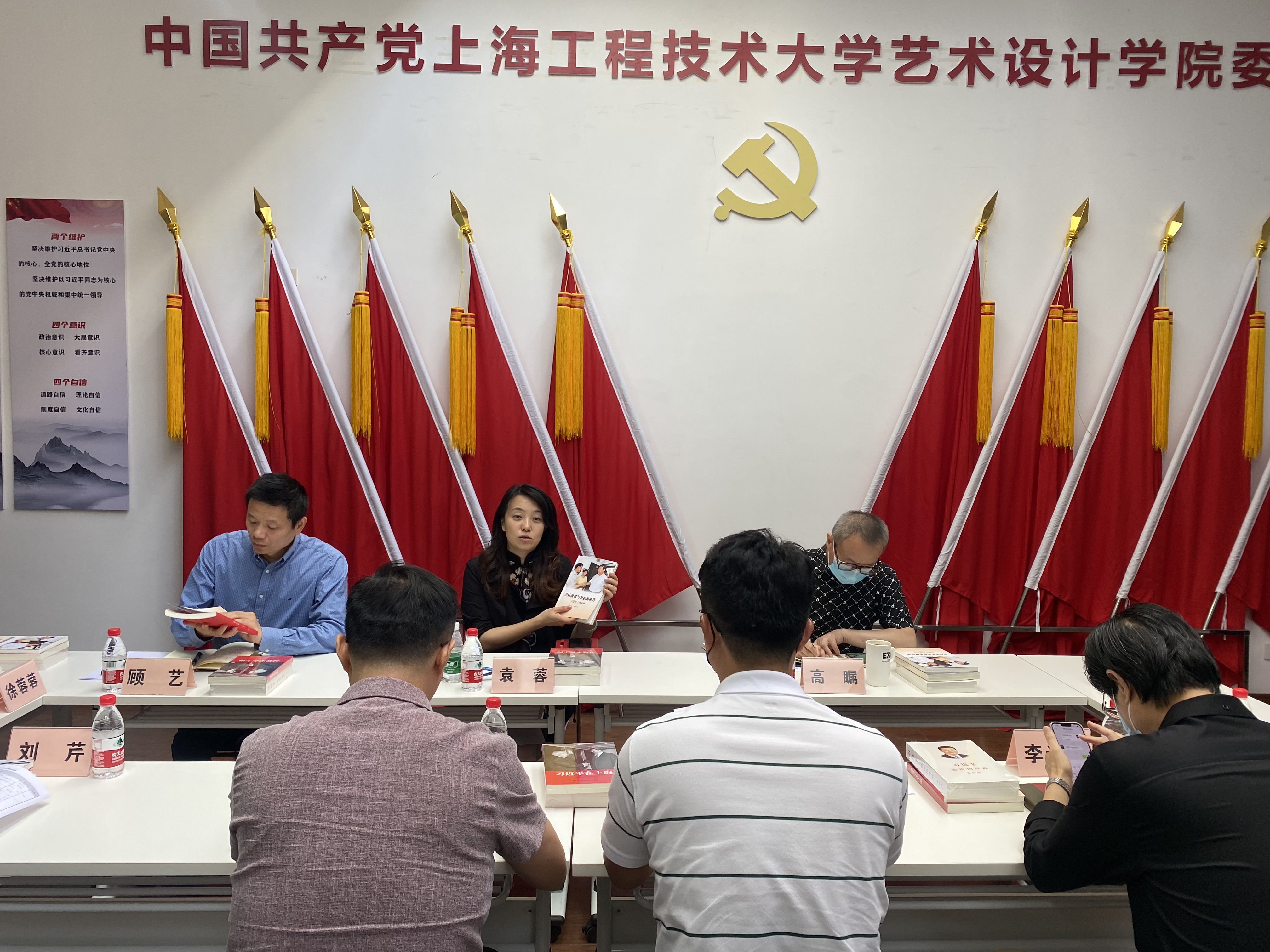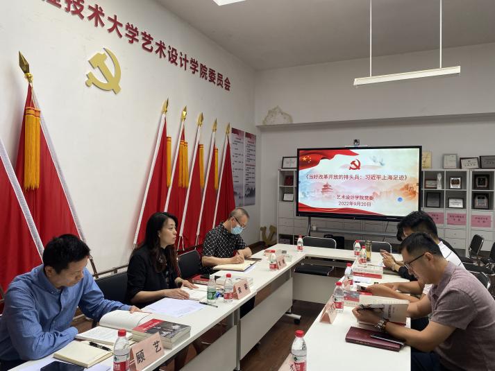 会上,袁蓉书记领学了《当好改革开放的排头兵:习近平上海足迹》一书的主要内容和章节,袁书记强调,学习《当好改革开放的排头兵——习近平上海足迹》要带着感情学、联系实际学、深入持久学,不断增强政治意识,坚决做到“两个维护”的政治自觉、思想自觉和行动自觉。她谈到,习总书记为上海确立了“海纳百川、追求卓越、开明睿智、大气谦和”新的城市精神,赋予上海这座城市开放、创新、包容的品格。我们的高教管理工作,就应多听师生群众的声音,结合巡视“回头看”整改工作,多做实事,统筹抓好疫情防控和日常工作。同时抓好设计学一级学科在软科排名首次进入前30%,把设计、艺术、技术及科技四个方面融合的优势,更加奋发推动行业和城市发展,并做出应有的贡献,学好用好这个最生动最鲜活的教科书,以实际行动迎接党的二十大胜利召开!