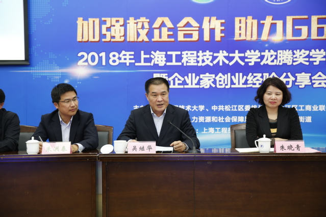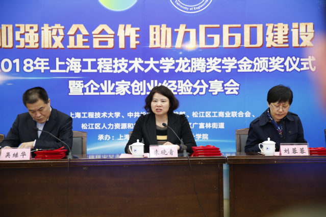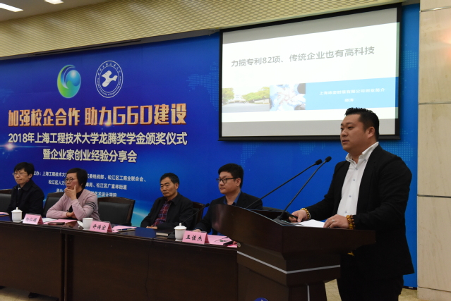 民建松江区委副主委、松江区工商联副主席、上海荣腾置业有限公司董事长马建军先生宣读了2018年龙腾奖获奖名单,并对同学们优秀表现表示祝贺。自“龙腾奖学金”在公司设立七年以来,已评选出了大批品学兼优、励志成才的工程大学子,彰显着松江优秀民营企业家“热心教育事业、积极回报社会”的大爱情怀。