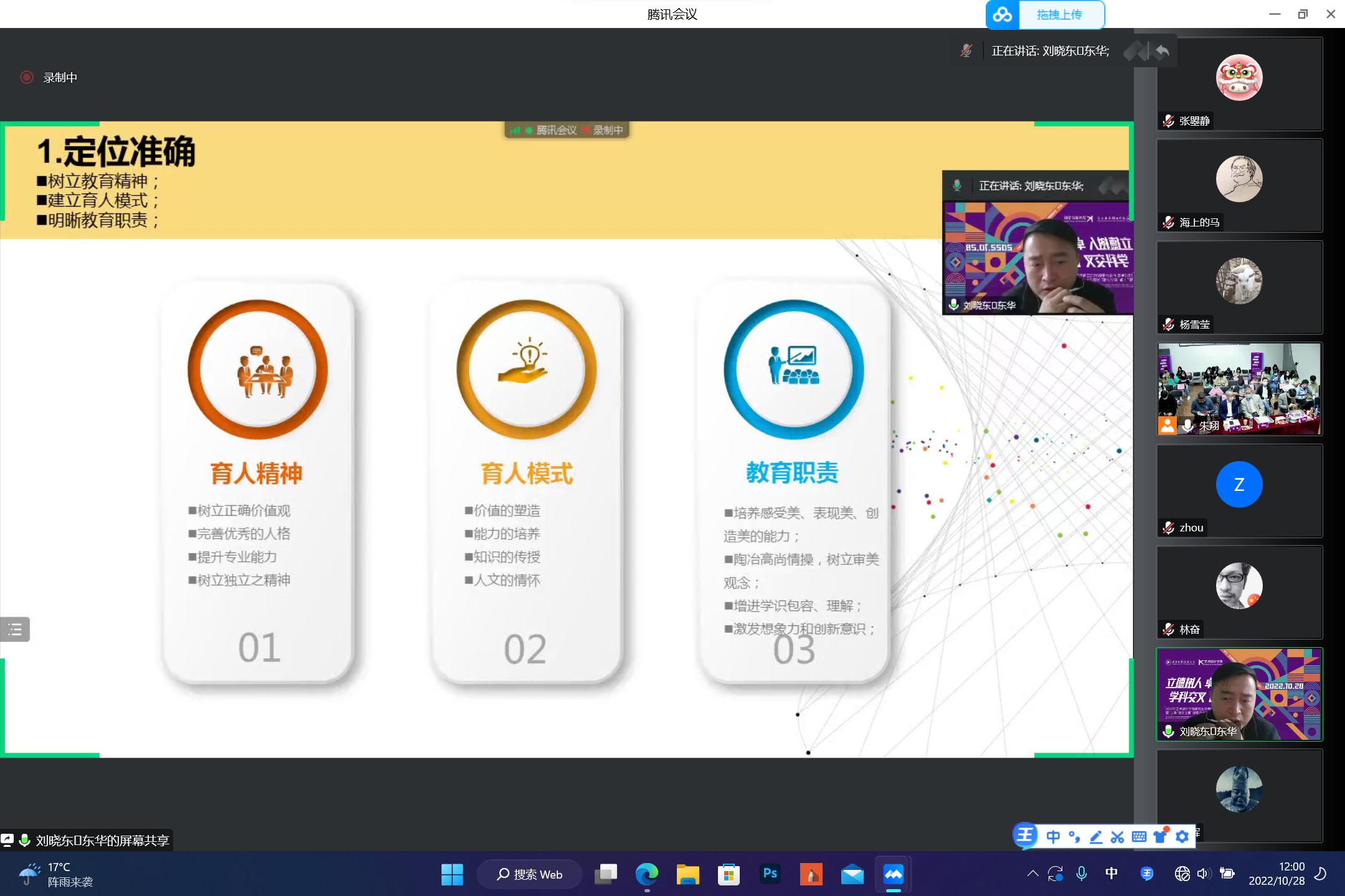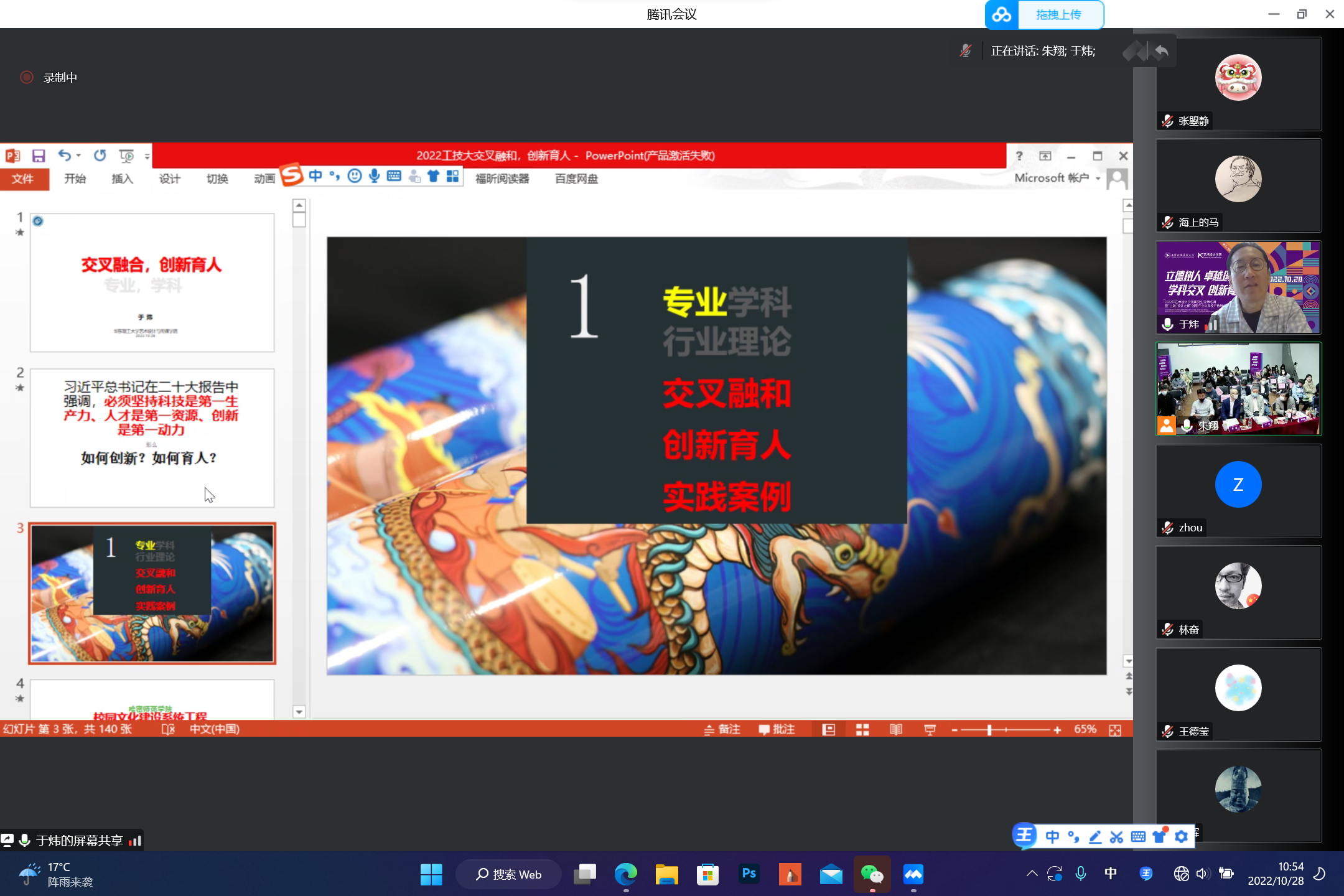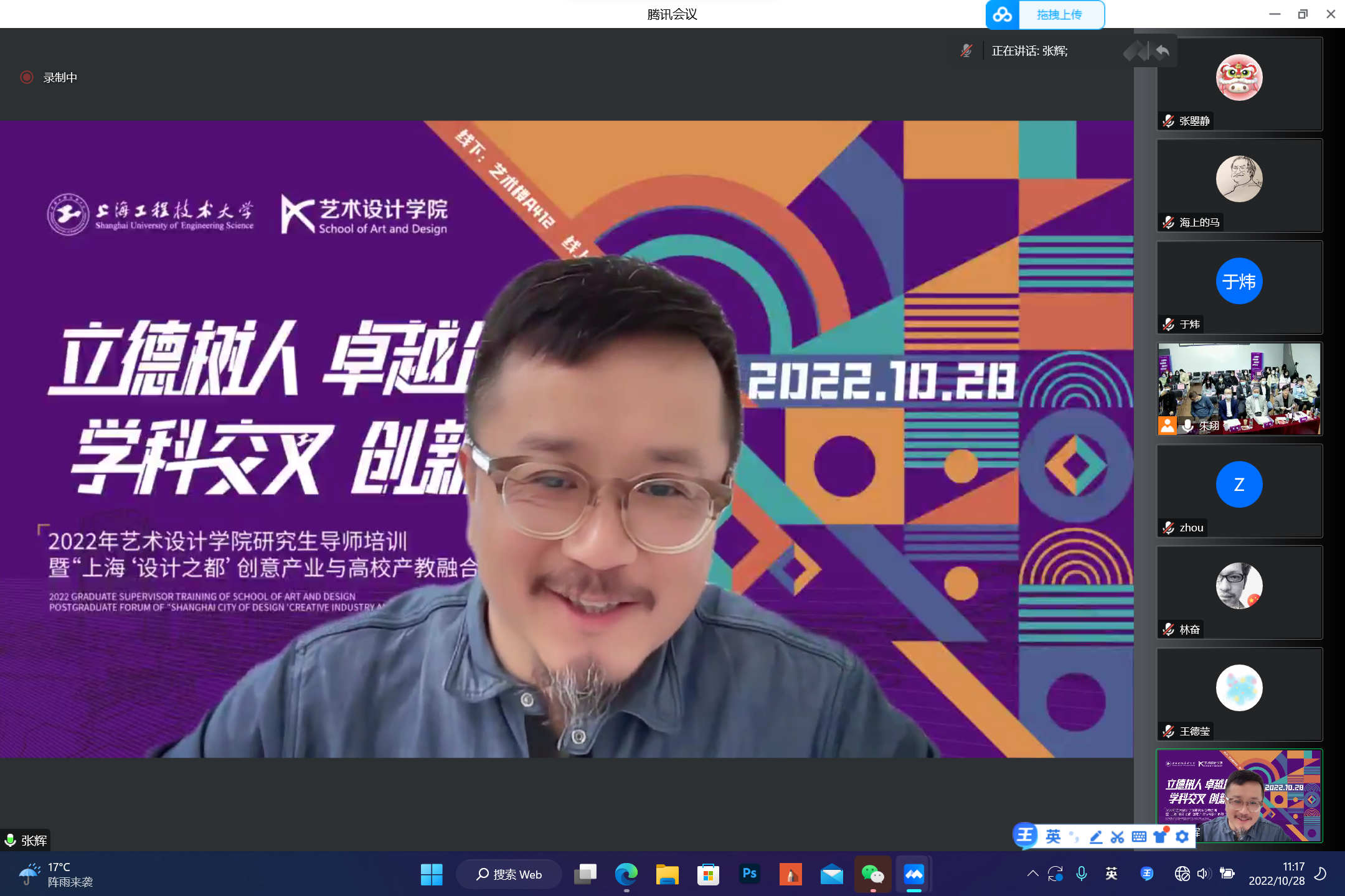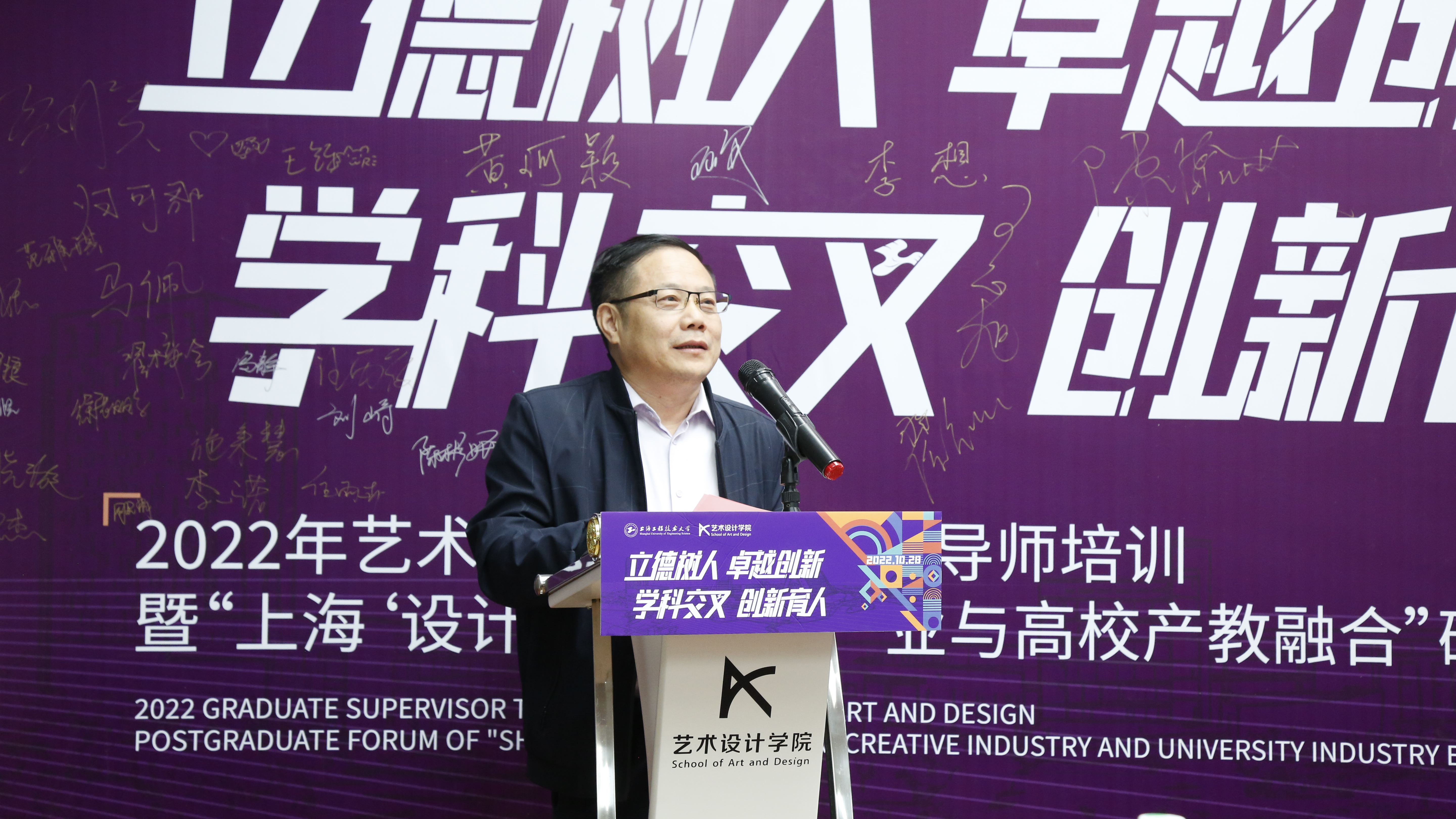 华东理工大学艺术设计与传媒公司副经理、教授、博士生导师于炜演讲《交叉融合,创新育人》,于炜教授以习近平总书记在二十大报告中强调的“必须坚持科技是第一生产力、人才是第一资源、创新是第一动力”的指导,分析专业学科和行业理论,用案例分析学科交叉融合、实践创新育人。