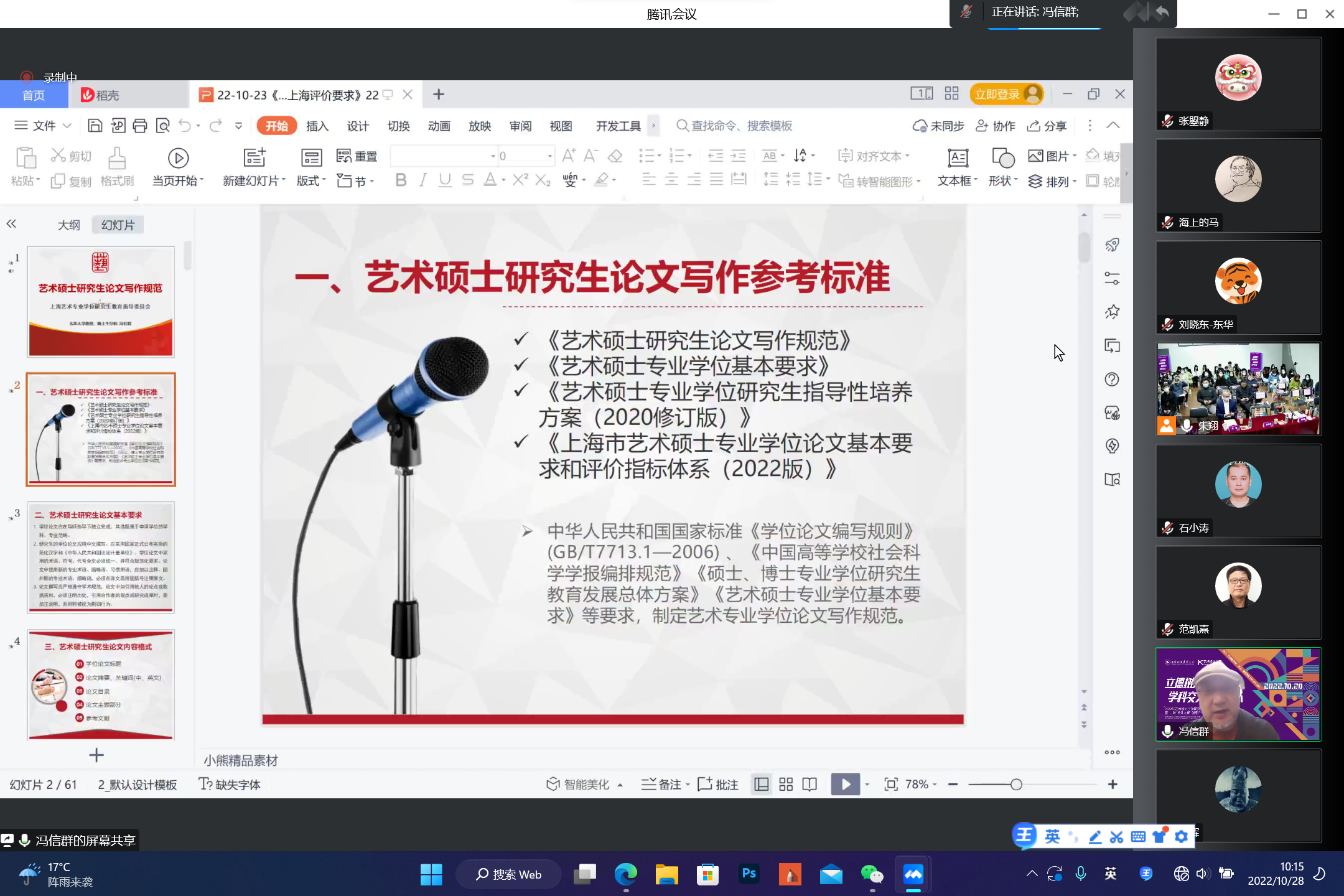 全国艺术专业学位研究生教指委委员、教育部设计学类专业教育指导委员会委员、东华大学教授、博士生导师、 服装与304永利集团副经理冯信群教授演讲《艺术专业学位论文基本要求及评价指标体系》,主要从艺术硕士研究生论文写作规范入手,依次从艺术硕士研究生论文写作参考标准、基本要求、内容格式几个方面进行了详实细致地介绍。