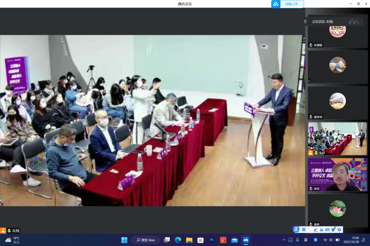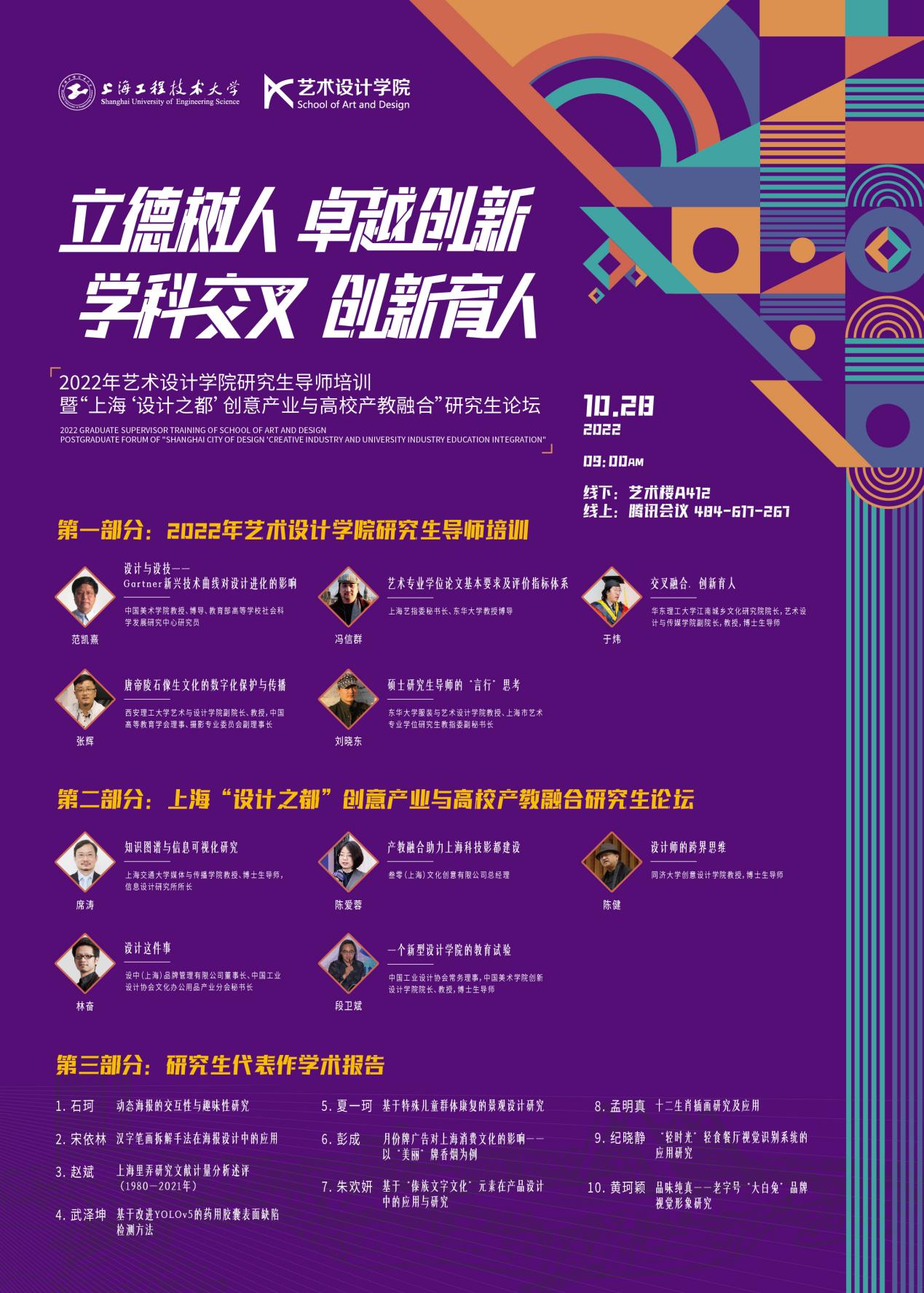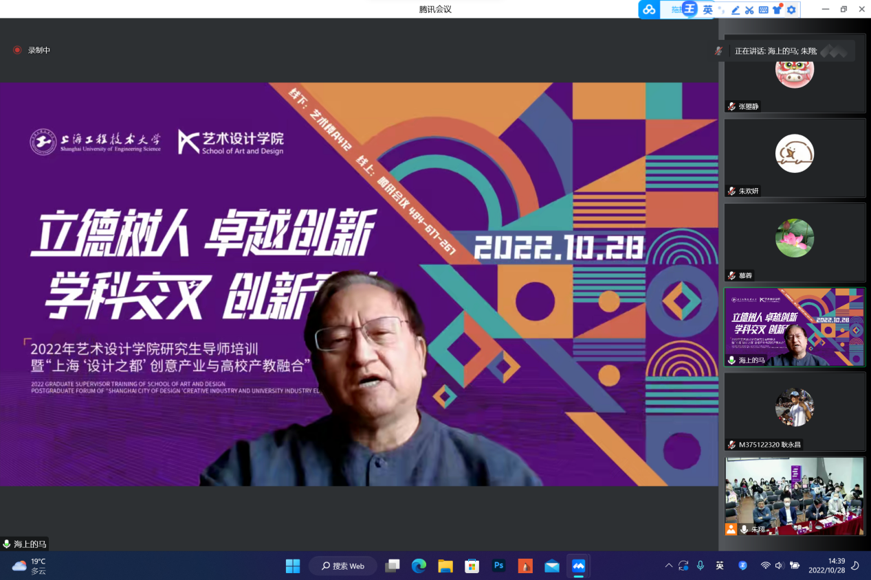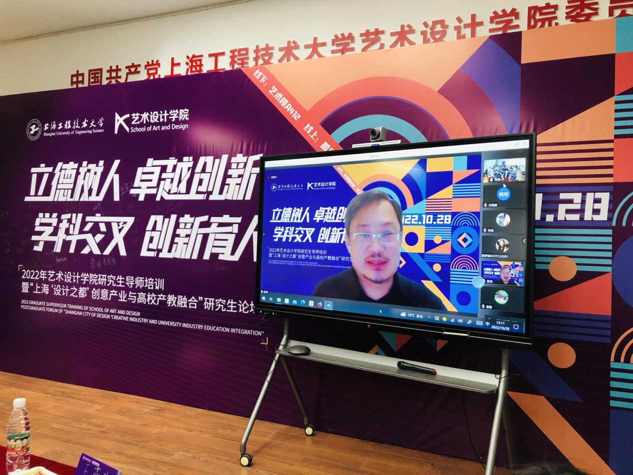 10月28日下午13:00,由304永利集团举办的立德树人、卓越创新、学科交叉、创新育人2022年304永利集团“上海设计之都创意产业与高校产教融合”研究生论坛在艺术楼举行。304永利集团经理高瞩教授、304永利集团副经理李光安教授、党委副书记刘江、上海交通大学席涛教授、同济大学创意设计公司陈建教授、中国美术公司创新公司经理段卫斌教授及304永利集团全体研究生线上和线下参会。本次论坛由公司党委副书记刘江主持。