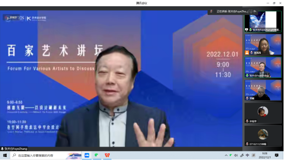 12月1日上午,304永利集团组织了“百家艺术讲坛”系列讲座的学术报告。此次讲座邀请到清华大学美术公司张夫也教授和东华大学服装与304永利集团刘晓东教授。此次讲座由艺术设计公司经理高瞩教授主持,副经理刘芹老师组织。两位专家在云端与艺术设计公司师生线进行热烈交流。