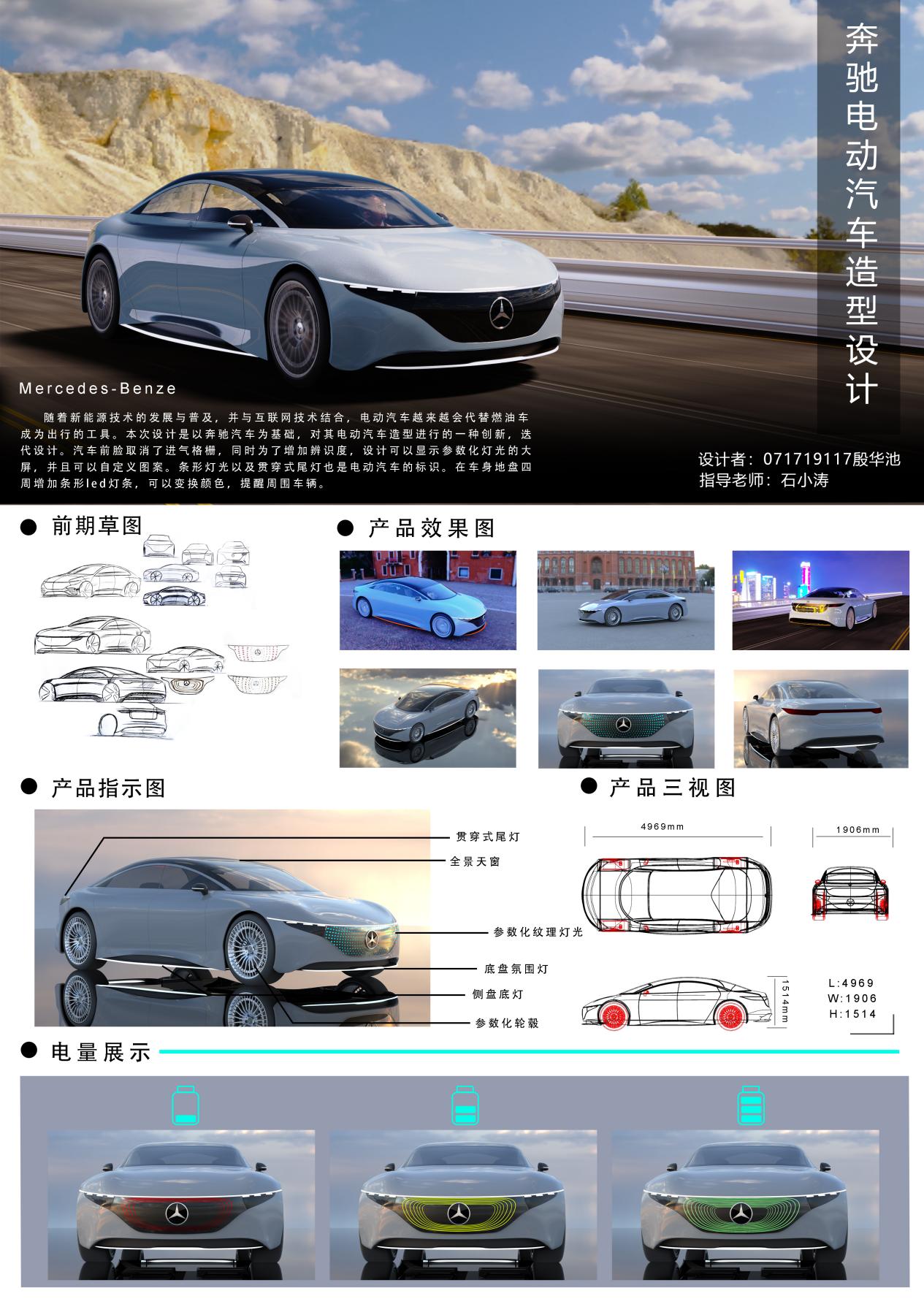 3、作品名称:奔驰电动汽车造型设计