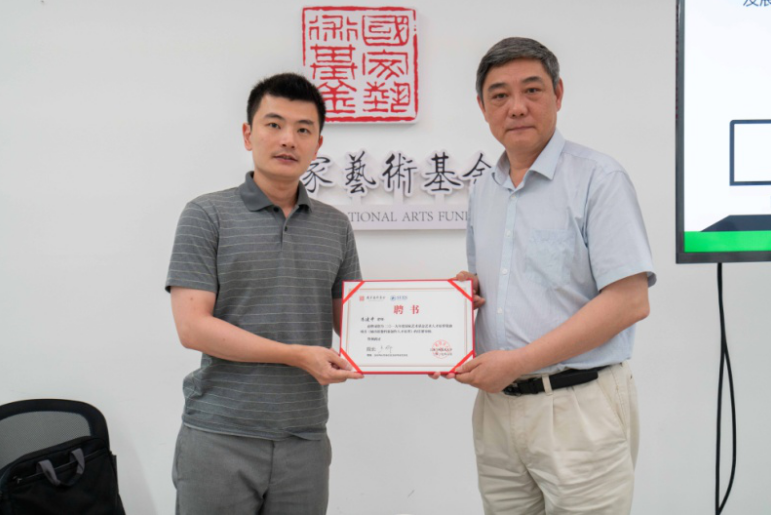 张笑秋老师为朱建中老师颁发聘书
