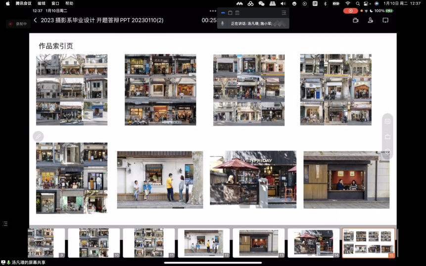 本次开题答辩在专业统一安排以线上形式展开。答辩采取回避原则,即员工所在答辩小组没有自己的指导教师参与,这也为了其他导师能够更好的从员工作品出发提出意见。此次开题答辩要求员工对自己的选题从作品的题目来源、创作目的与意义、创作计划、参考作品以及展示不少于5张的现阶段拍摄照片等方面进行答辩。